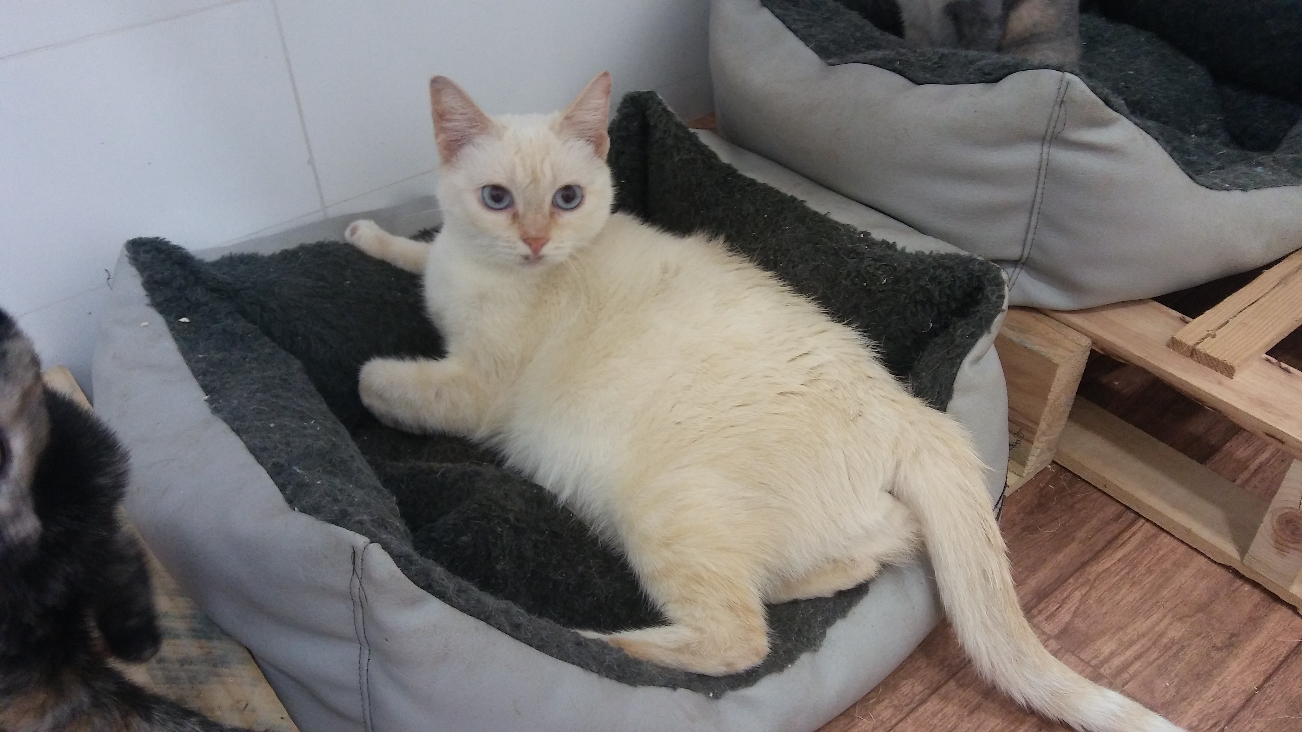 Recogida de la calle. Estaba pidiendo ayuda y una voluntaria la rescató. Se lleva bien con otros gatos. Es muy cariñosa y tranquila.